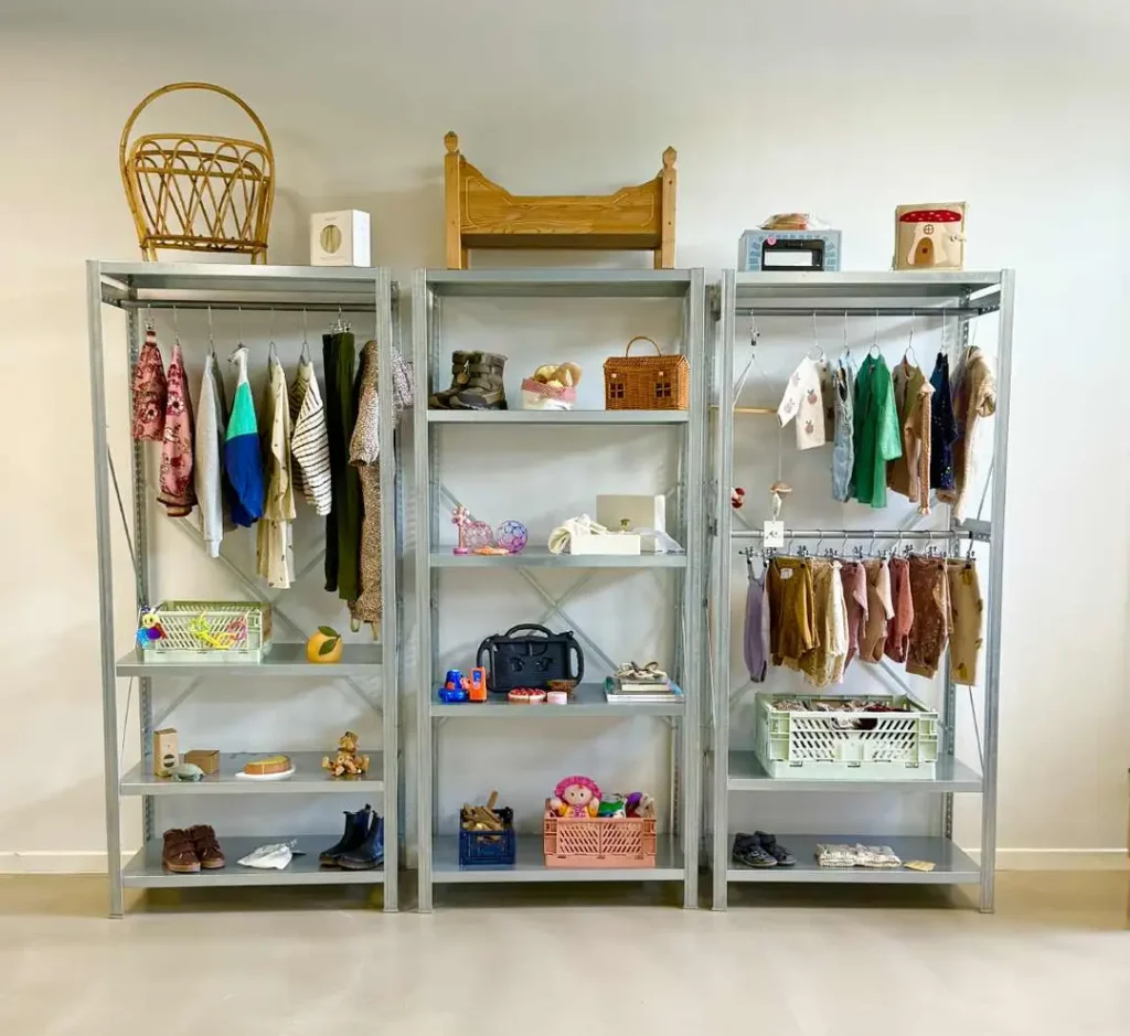 Vi har 50 reoler til rådighed og plads til mere end 3000 stykker tøj, som er klar til at skabe glæde hos andre.